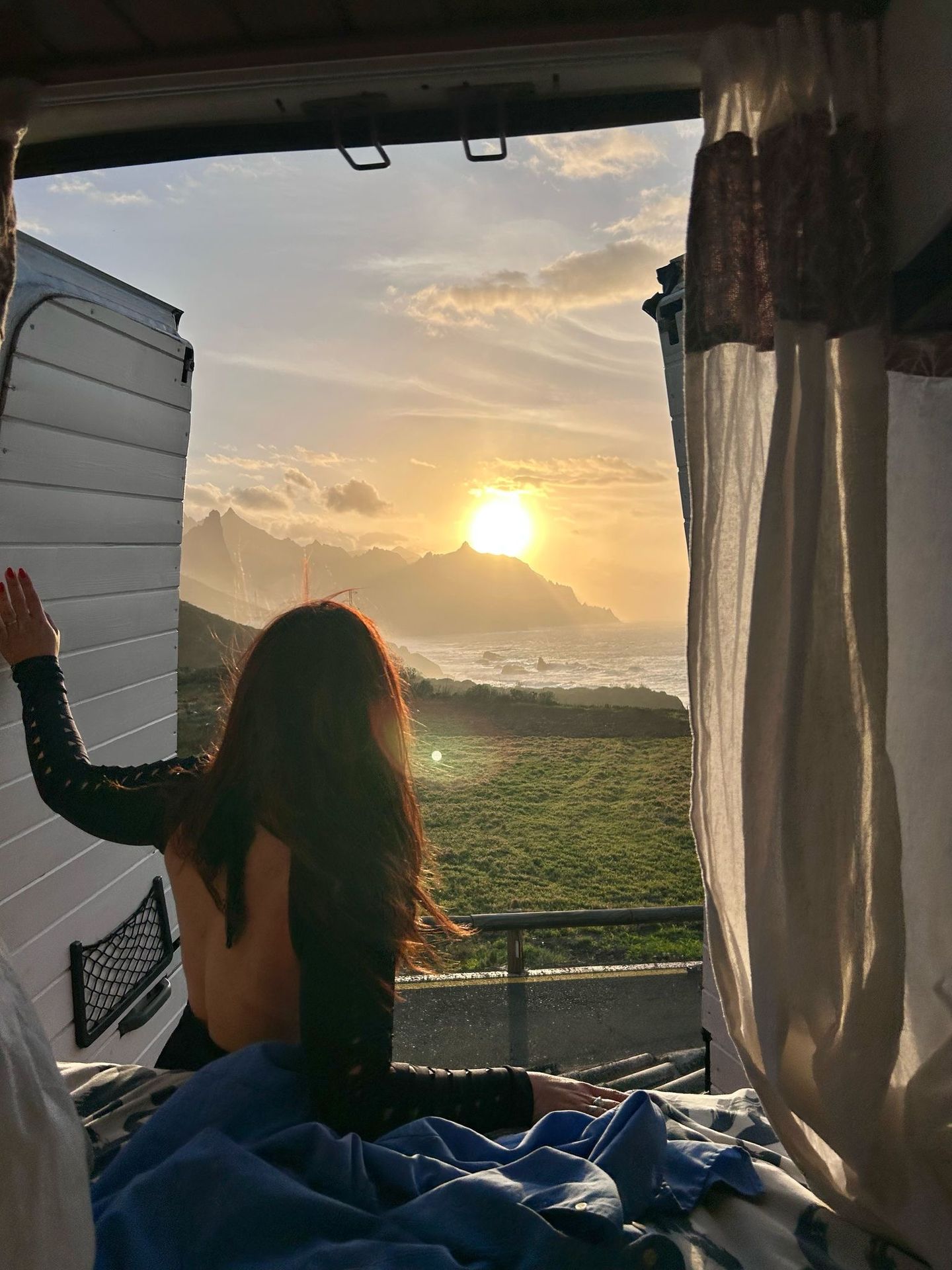 Imagina despertar cada mañana con el sonido del mar, abrir las puertas y ver cómo el sol ilumina los acantilados, las playas doradas o los verdes barrancos de Anaga. Imagina tener el Teide a un lado, el océano al otro, y la libertad absoluta de decidir cada día dónde ir, dónde dormir, dónde soñar.