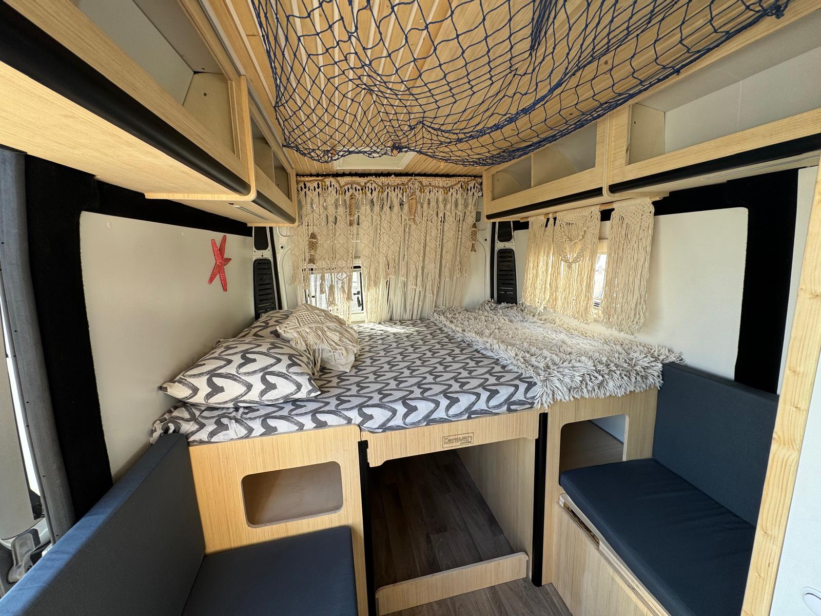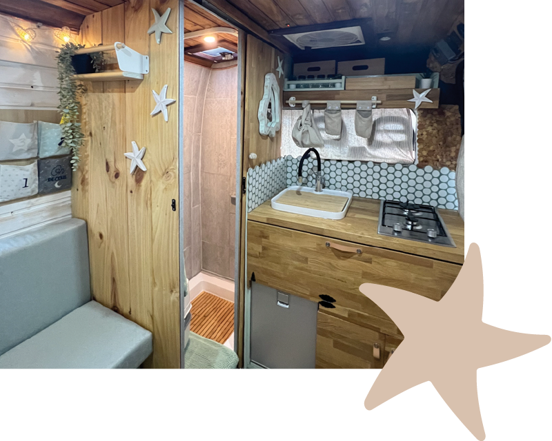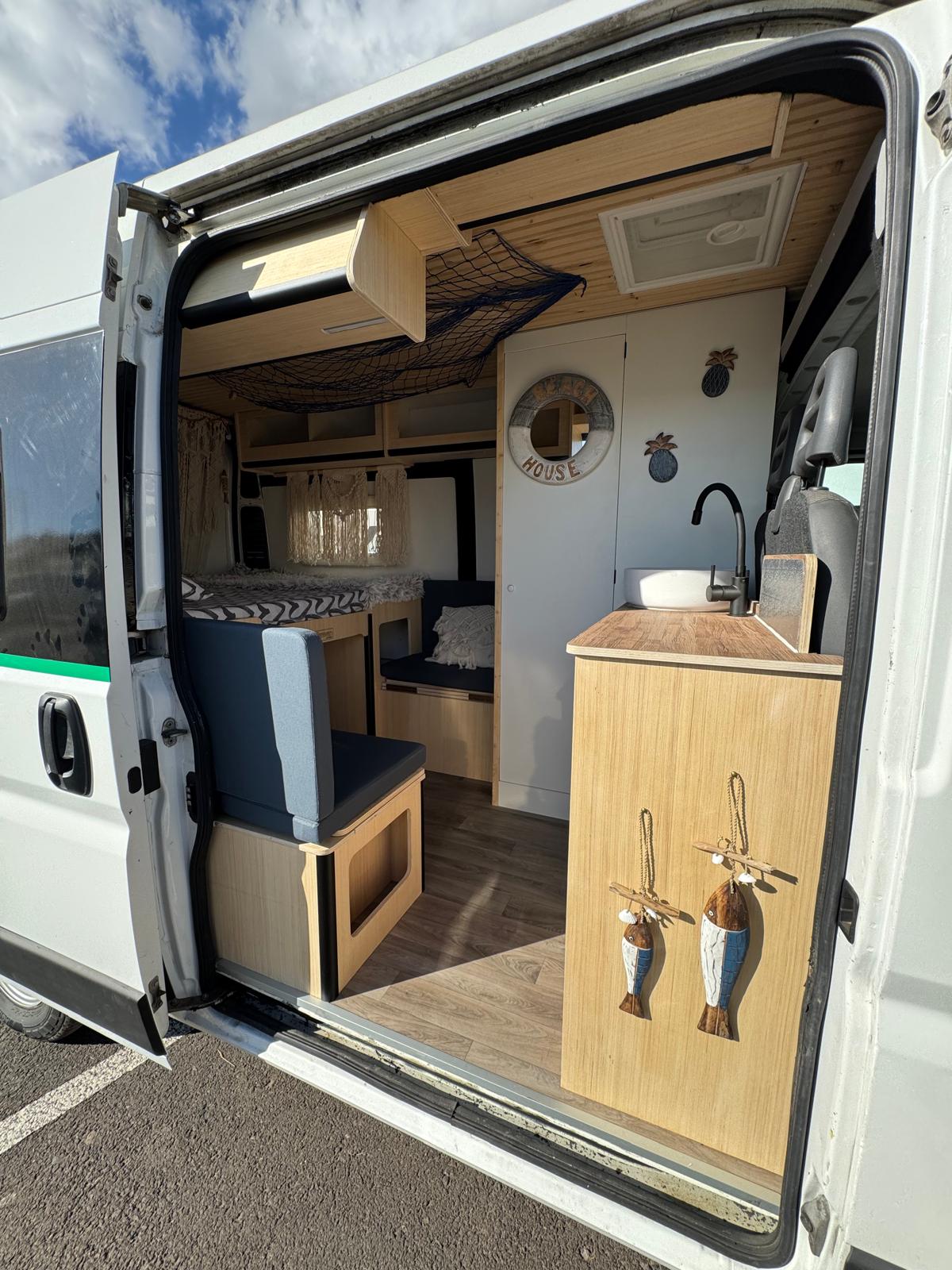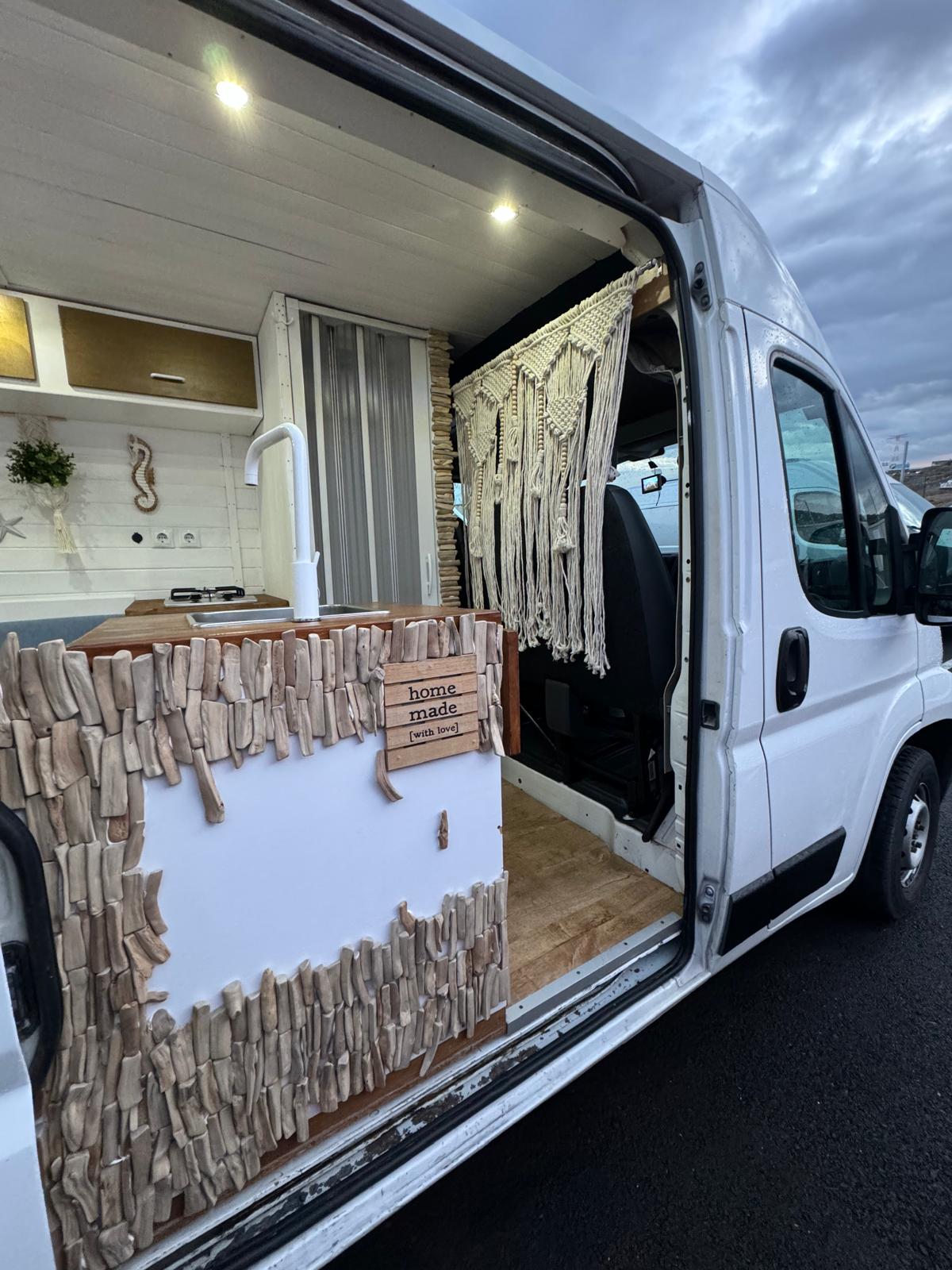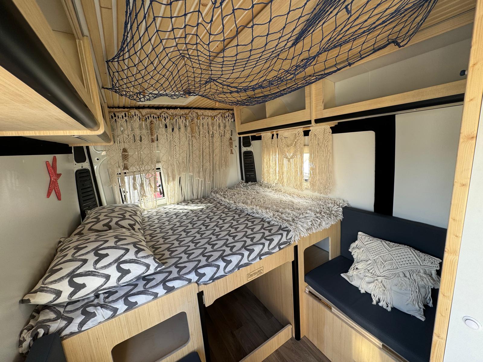 Imagina despertar cada día en un lugar distinto, con vistas al mar, rodeado de naturaleza o en un rincón tranquilo bajo las estrellas. Así es viajar con nuestra camper hecha a mano, un espacio único creado con cariño, pensado para que te sientas como en casa desde el primer momento.