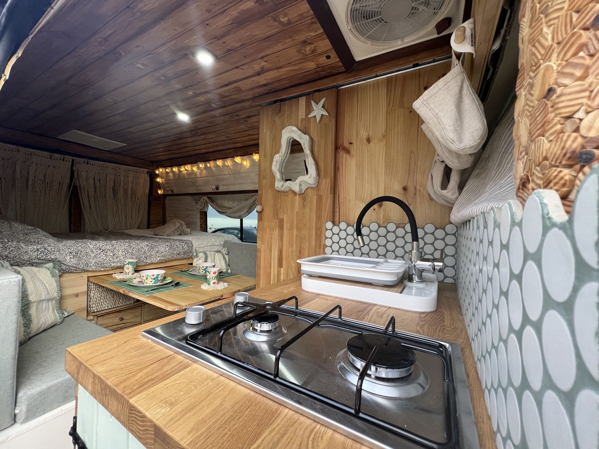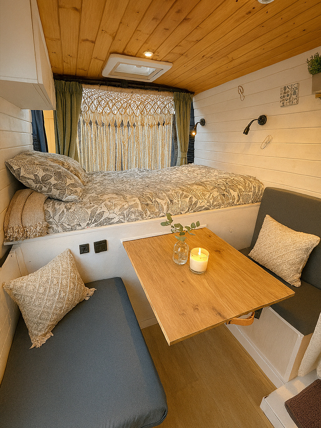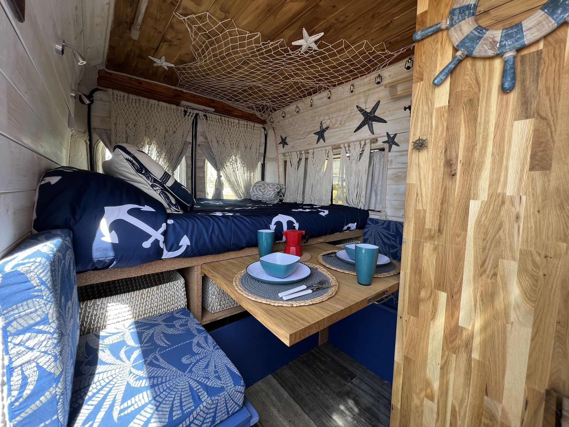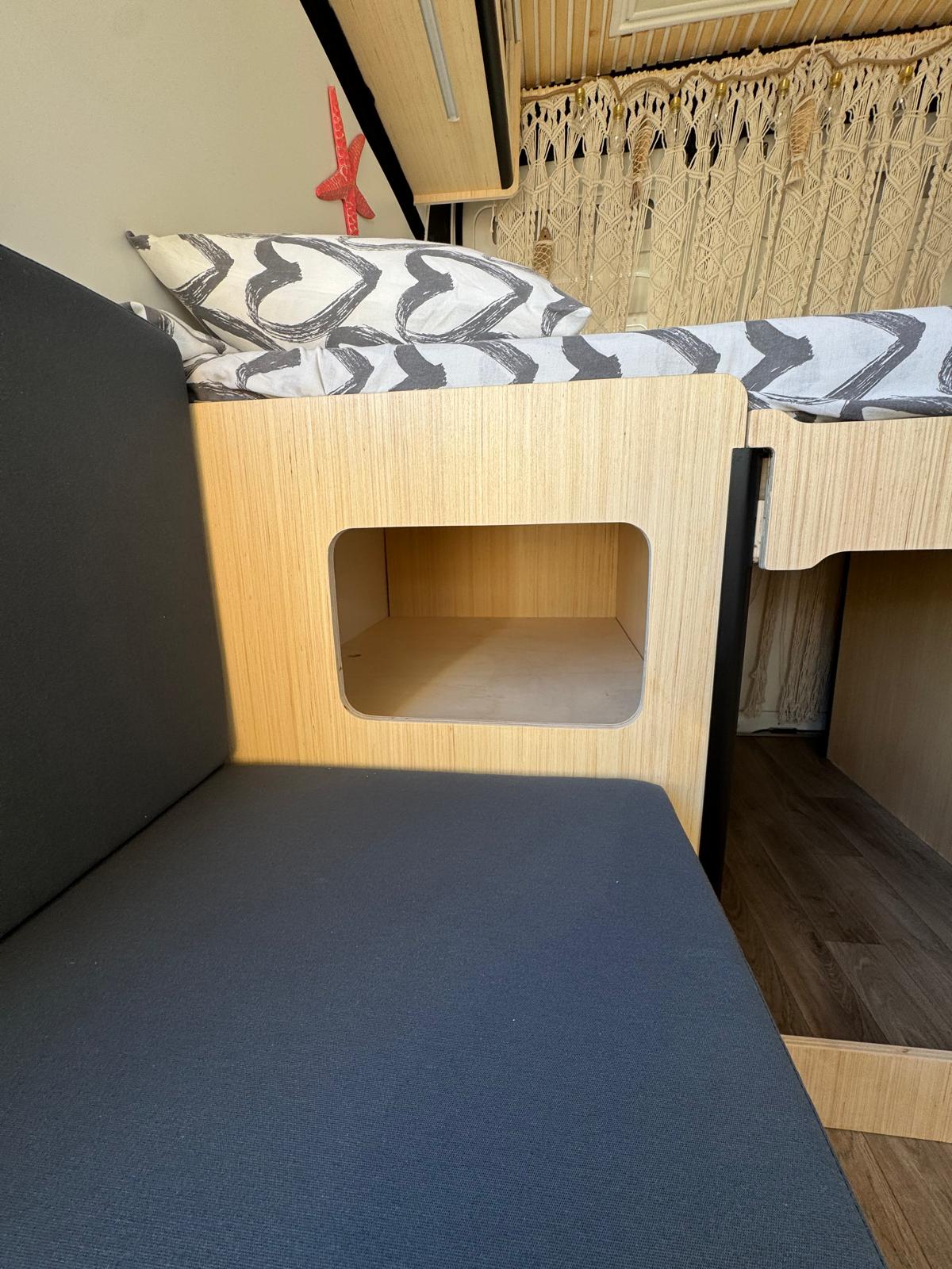 Imagina despertar cada día en un lugar distinto, con vistas al mar, rodeado de naturaleza o en un rincón tranquilo bajo las estrellas. Así es viajar con nuestra camper hecha a mano, un espacio único creado con cariño, pensado para que te sientas como en casa desde el primer momento.