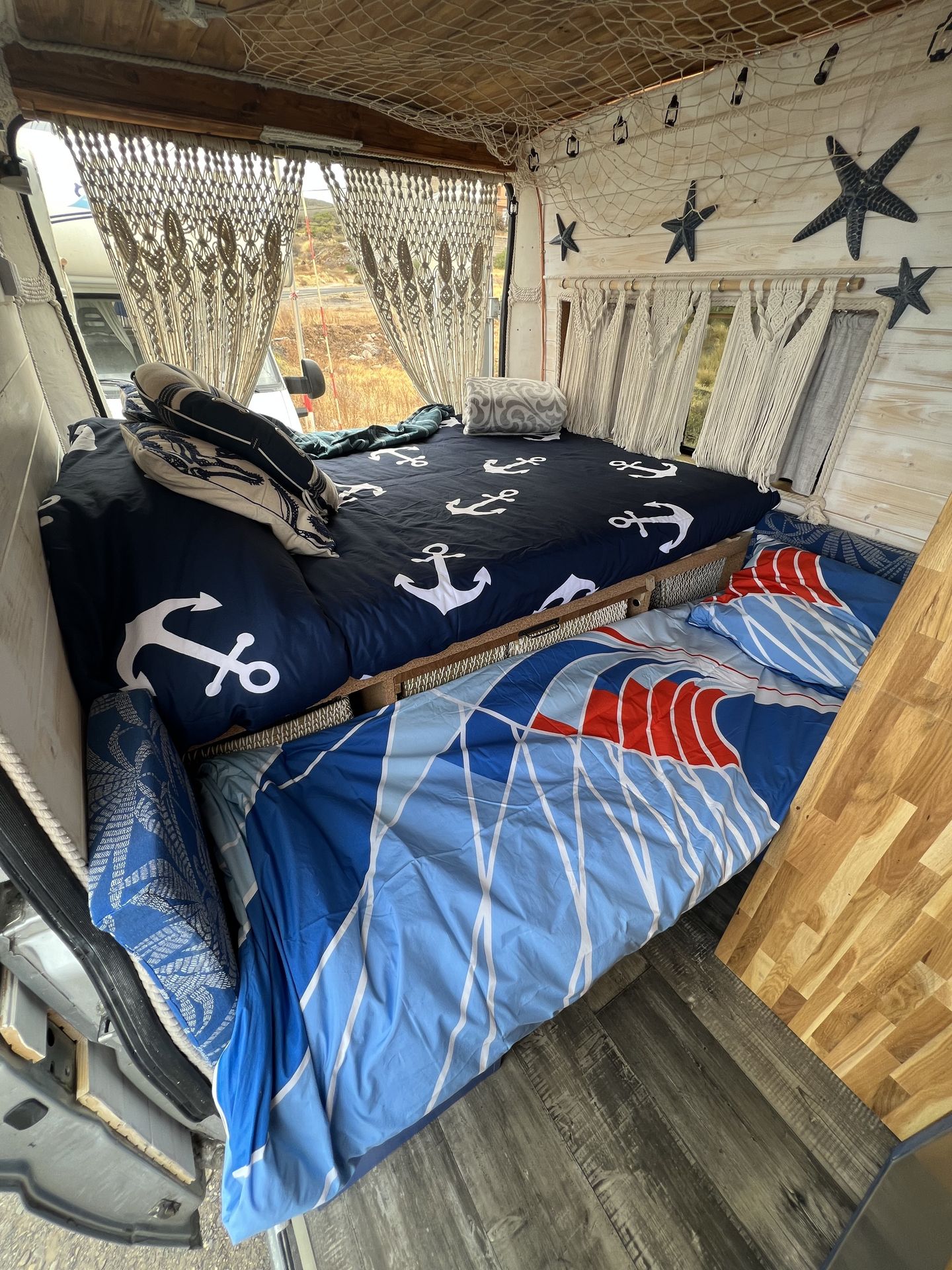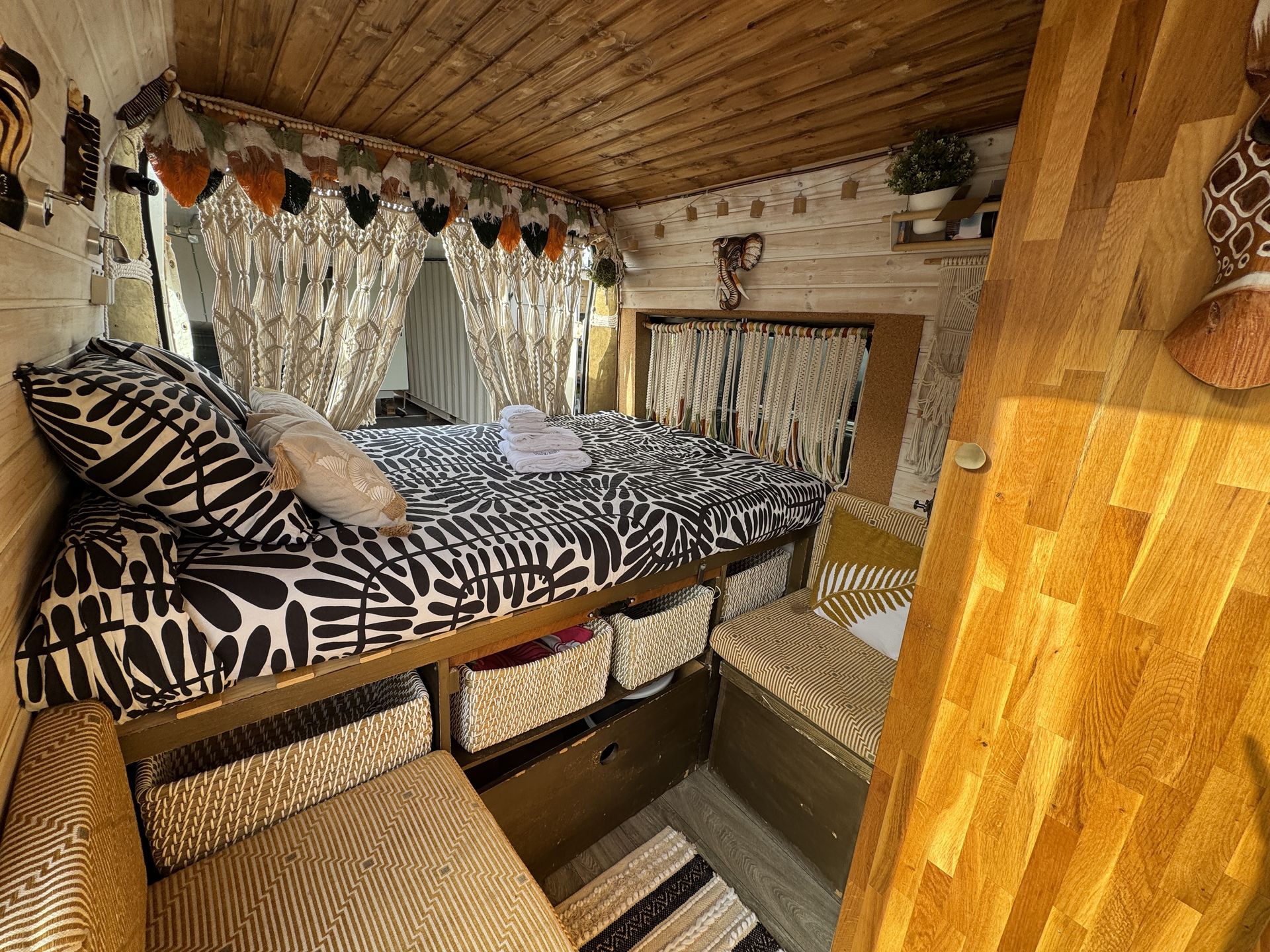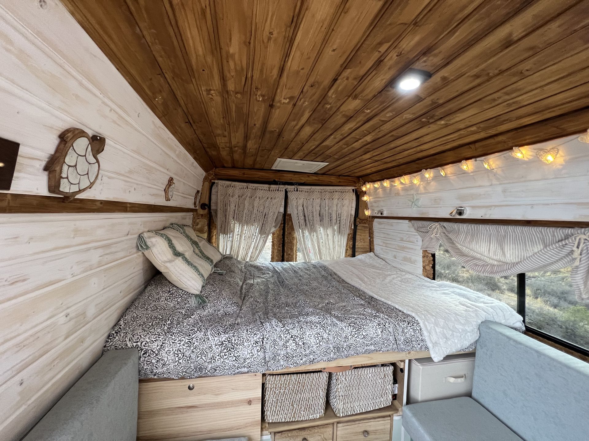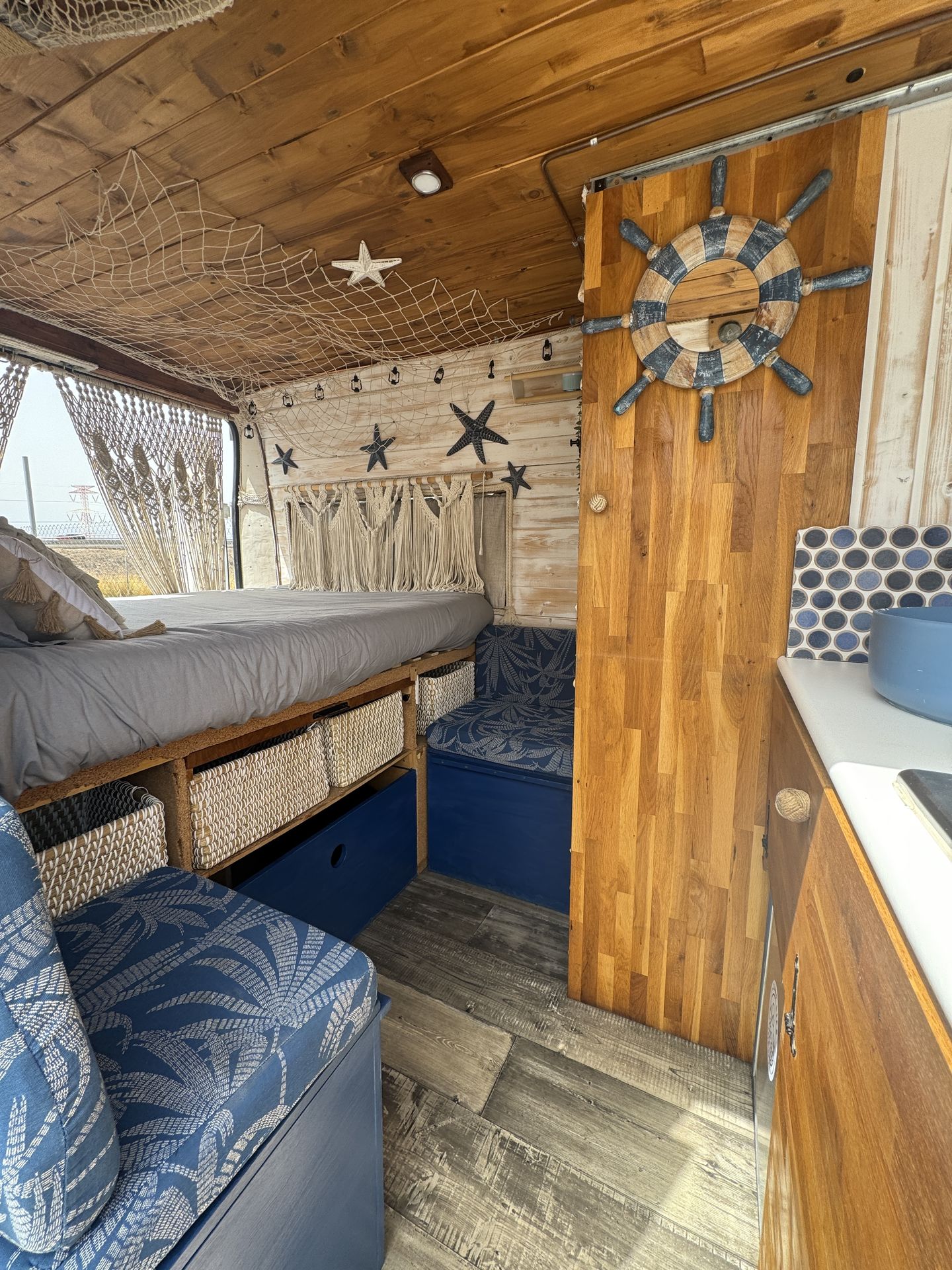 Imagina despertar cada día en un lugar distinto, con vistas al mar, rodeado de naturaleza o en un rincón tranquilo bajo las estrellas. Así es viajar con nuestra camper hecha a mano, un espacio único creado con cariño, pensado para que te sientas como en casa desde el primer momento.