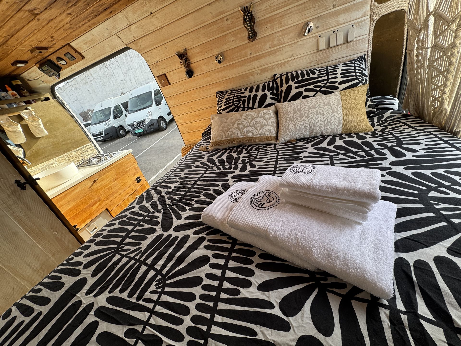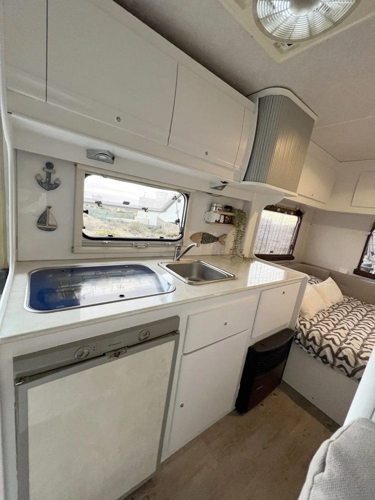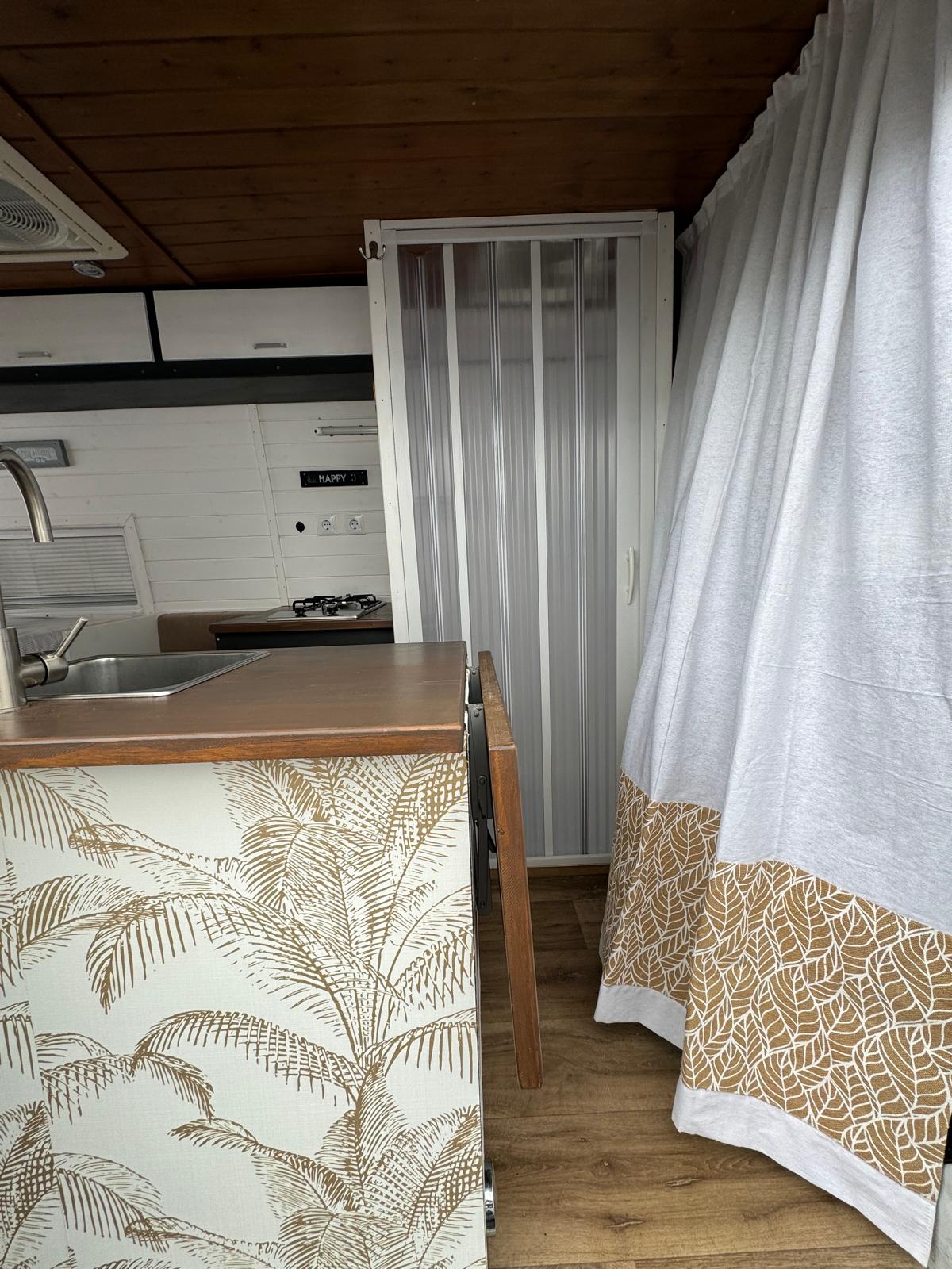 Cuenta con todo lo necesario para que no eches nada en falta: una cama amplia y cómoda, cocina equipada, agua caliente, electricidad gracias a paneles solares, y todos esos pequeños detalles que marcan la diferencia. Todo está cuidadosamente diseñado para que tu único plan sea disfrutar.