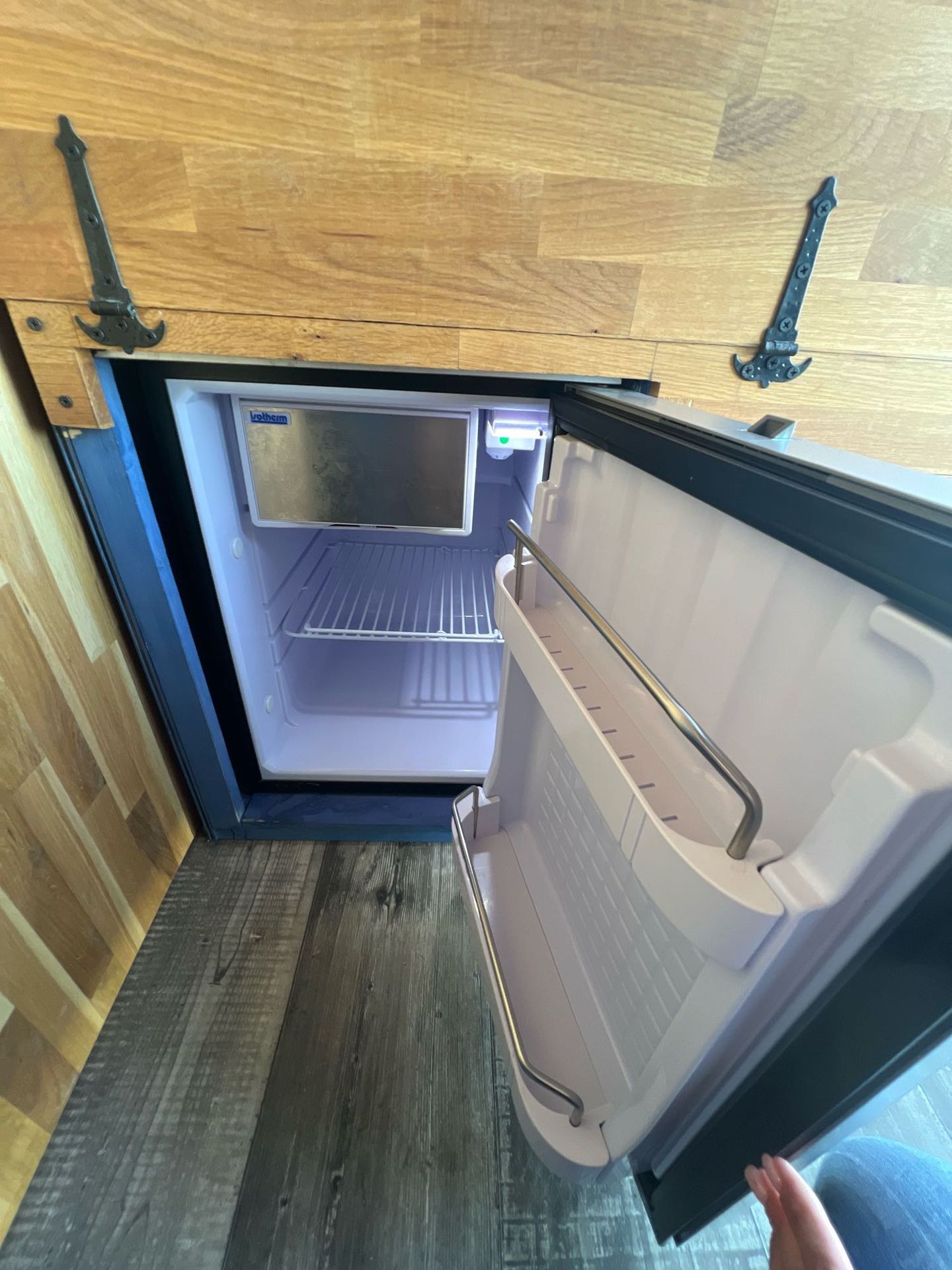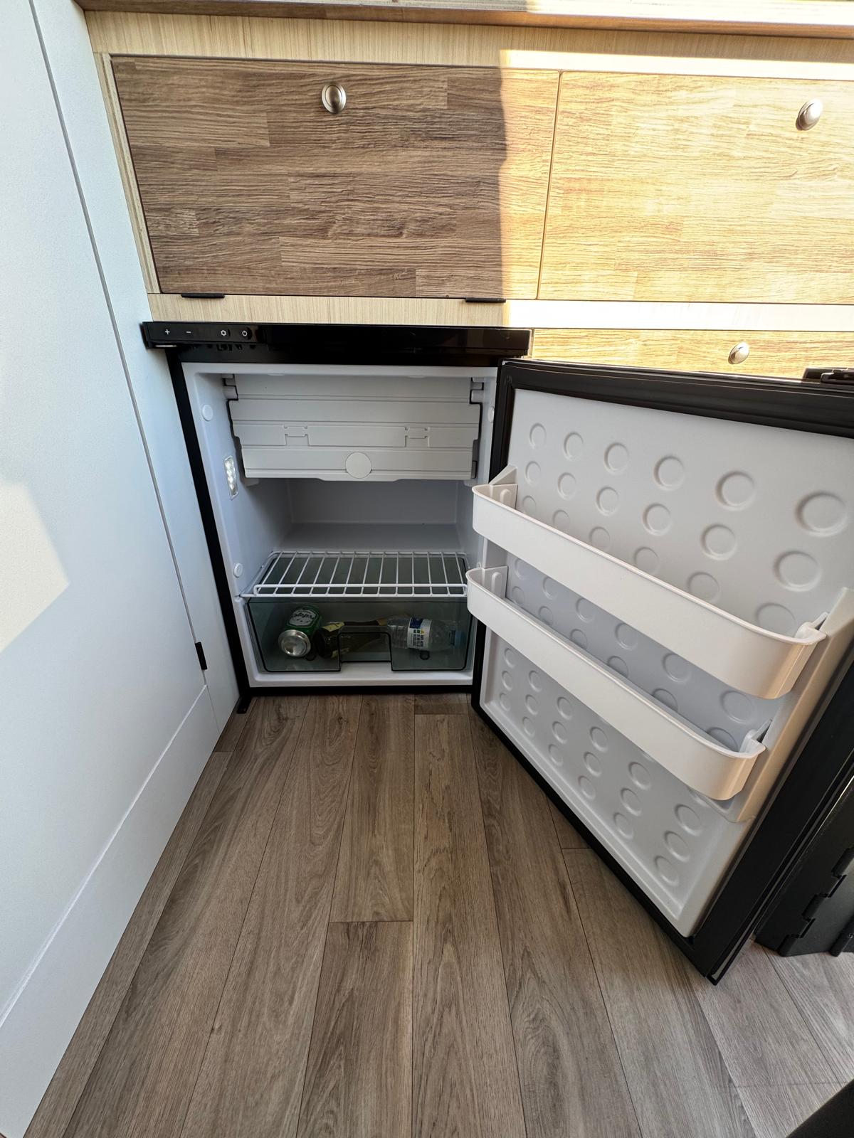 • Nevera de 60 litros con congelador integrado, funciona con batería auxiliar