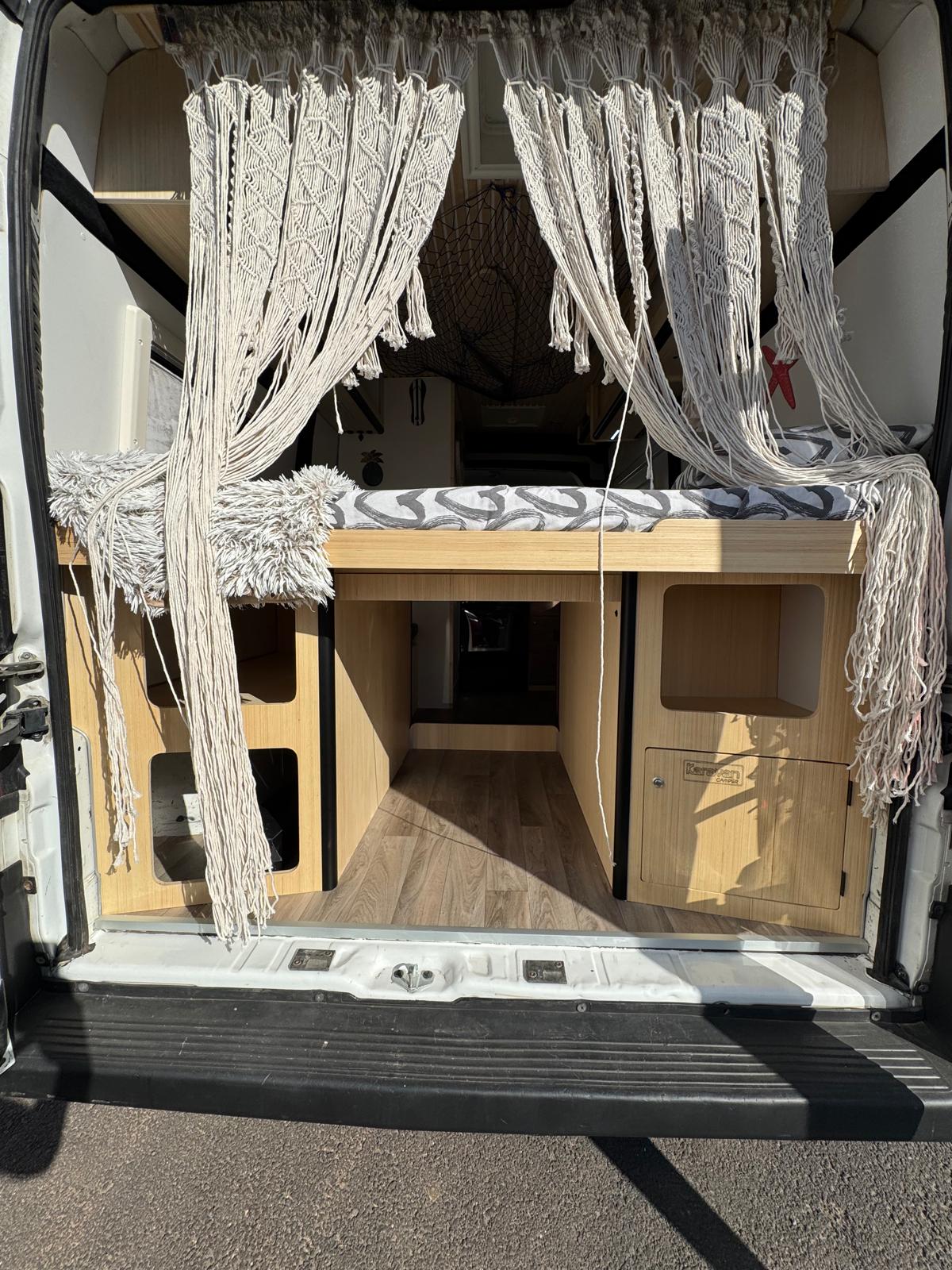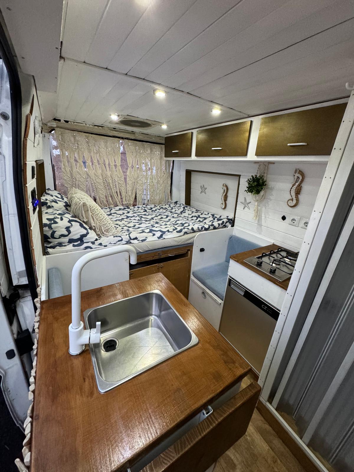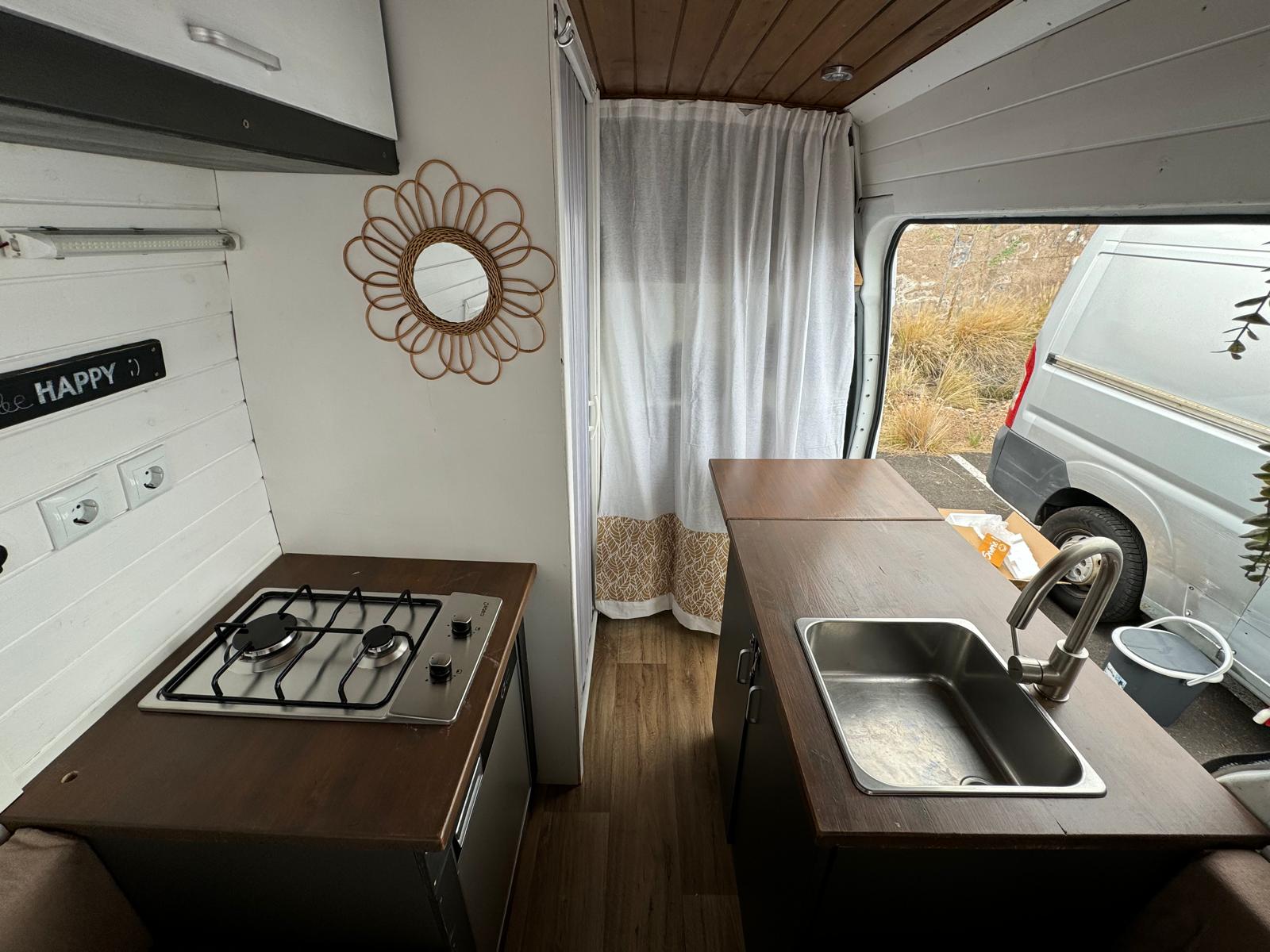 Equipada con una cama cómoda, cocina completa, nevera, ducha, panel solar, y espacio de almacenaje inteligente, esta camper está diseñada para que no te falte de nada. Tanto si planeas una escapada romántica como una ruta más larga, aquí tendrás el equilibrio perfecto entre funcionalidad y confort.