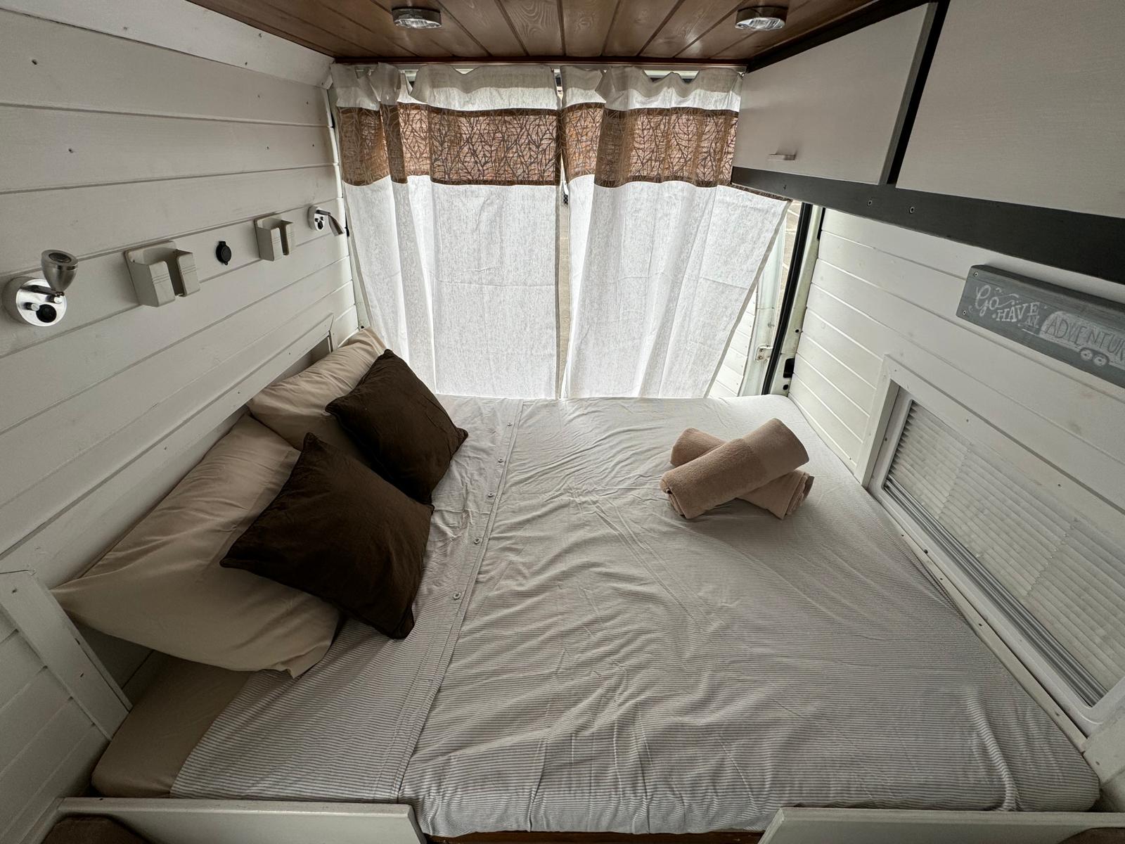 Nuestra camper está pensada para ofrecer el equilibrio perfecto entre comodidad, funcionalidad y libertad. Ideal para una pareja o una pareja con un niño, este acogedor espacio sobre ruedas te permite vivir la isla a tu ritmo, sin renunciar a nada.