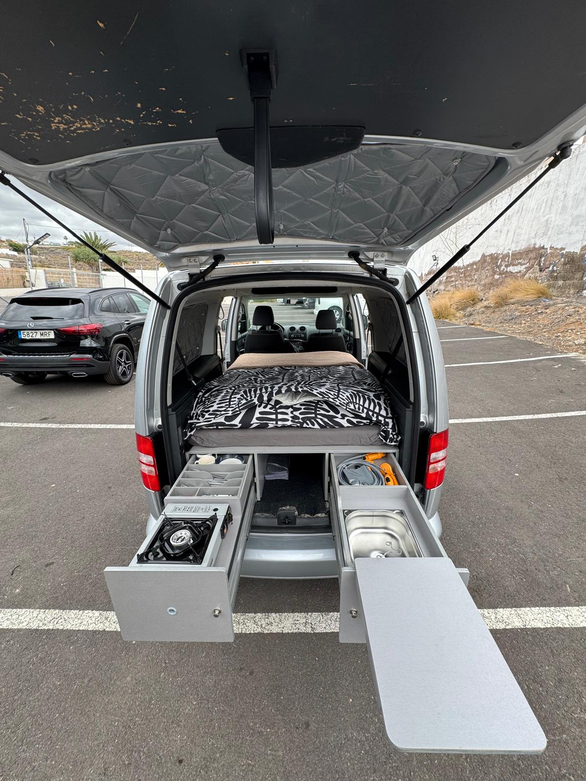 Caddy camperizado para dos personas – Práctico y perfecto para unos días de aventura
